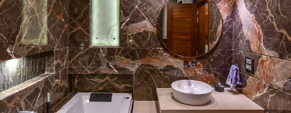 While Ar Singhal kept the floor plan simple and opted to keep most of the walls white, she worked on bringing in subtle elements to the built spaces. Fine Italian marble was sourced for the flooring, counters and cladding, and a team of artisans brought from Agra (where the art of pietra dura has been practised for generations) to work motifs of semi-precious stones inlaid into the floor